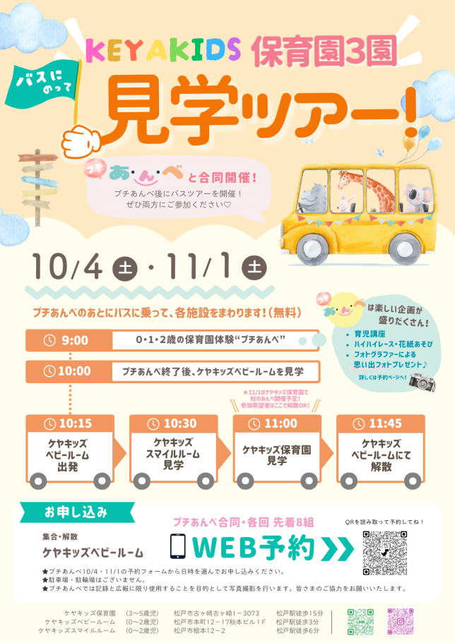 午前の「プチあんべ」で遊びや講座を楽しんだあと、そのままバスに乗って3つの園をぐるっと見学!🚌